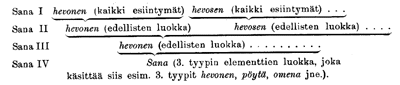 241 kumpaa uskon. Tämä ehkä vain minulle hämäräksi jäänyt probleema toistuu kaikkien ns. heterokliittisten (tai Noreenin suosittamalla termillä sanoen heterotemaattisten) paradigmojen kohdalla. Toiselta puolen kyllä Vir. 1523 sanotaan, että sanalla 'hevonen' tarkoitetaan jokaista sellaista muotoa ja kaikkia sellaisia muotoja, jotka merkitsevät eläintä 'hevonen"', ts. siis tyydytään ehkä vain merkitykselliseen samuuteen. Mutta käsittääkö sana 'hevonen' sitten kaikki muut hevoseläintä tarkoittavat ilmaukset (esim. hepo?, entä vieraskieliset: Pferd?). Sivulla 155 tähdennetään kuitenkin taas muodon yhteyden tärkeyttä. Että muoto on lähtökohtana, huomaamme siitäkin, että pienikin muodollinen eroavaisuus . . . on tai saattaa olla riittävä puhuaksemme eri sanoista (esim. vaahti ja vaahto, irti ja irki, ovat merkityksen yhtäläisyydestä huolimatta eri sanoja..." Läheistä sukua ylläolevalle on se kysymys, joka viriää erään prof. SETÄLÄn mainitseman esimerkin johdosta. Minun on ollut vaikeata selvittää itselleni, minkä sanalle mainitun tuntomerkin perustuksella suomen lehmä ja mordvan (valitkaamme esim. ersalainen muoto) išme 'hevonen' ovat saman sanan muotoja. 2 (Vrt. esimerkkiä s. 144: Se sana, joka mordvassa merkitsee 'hevosta', merkitsee suomessa 'lehmää"'.) 2) Miten on vaiheen ja sanan määrittelyjen puitteissa ymmärrettävä se, että sellaisten ilmausten kuin jo, nyt, vaikka jne. (ns. taipumattomien sanojen) ollessa kysymyksessä vaihe ja sana lankeavat yhteen (niinkuin komitea lausuu ss. 845: . . . on tosin toisia tapauksia tässä tarkoitetaan n. s. taipumattomia sanoja , joissa 'sanalla, ei ole muuta kuin yksi muoto ja joissa siis 'sanan' molemmat merkitykset käyvät yhteen", prof. SETÄLÄ, Suomen suku I 38: Eräissä tapauksissa esiintyy määrätty sanakirjallinen merkitys vain yhdellä vaiheella (esim. jo, nyt, aina, vielä); silloin tämä vaihe on sanan ainoa muoto, ja tässä siis 'sana' ja 'vaihe' käyvät yhteen"). 3 Mikäli asiaa lainkaan ymmärrän, ei tämä ole mahdollista. Se käy- __________ 1 Komitean mietinnöstä lainattu kappale on eräs niistä kohdista, jotka tätä mietintöä lukiessa johdattavat ajatukseen paradigma = sana. 2 Niissä kun ei ole ei muodon eikä merkityksen yhtäläisyyttä. 3 Tähän perustuen saatoin (Vir. 44) sanoa, että komitean sanalle on jokseenkin tyypillistä" monivaiheisuus (vrt. arvostelua Vir. 153). Jonkin verran tyypillistä sen kai täytyykin olla, sillä ellei sanalla ole useampia kuin yksi muoto, niin se on sekä sana että sane. Siinä tapauksessa siis, että kielen sanat saattaisivat esiintyä vain yhdessä muodossa, ei olisi komitean mukaan mahdollista erottaa toisistaan sanoja ja vaiheita. Jos vaihe edes jossakin tapauksessa voi olla = sana, niin täytyy kaiken, mm. muotosarjaisuuden, mikä muissa tapauksissa erottaa sanan vaiheesta tietenkin olla verraten huomattavassa määrin sanalle luonteenomaista eli jokseenkin tyypillistä". 242 nee ilmi seuraavasta. Voimme kai olla varmoja siitä, että hevonen, sanan hevonen' vaiheena (puheen pienimpänä erillisenä osana", ymmärrettynä siis esim. sen ja sen henkilön silloin ja silloin lausumaksi), ei luonnollisestikaan taivu eikä edes voi taipua. Samaten vaikka silloin ja silloin tapahtuneena prosessina on taipumaton. Taipuvaisuudesta tai taipumattomuudesta voidaan puhua vasta, milloin kysymyksessä on sana. Taipuvaisuudella tarkoitamme tällöin, että asianomainen sana käsittää useita muotoja (ts. se luokka, jota sanomme sanaksi, on monielementtinen), t a i p u m a t t o m u u d e l l a sitä, että asianomainen sana käsittää vain yhden muodon (ts. tässä luokassa on vain yksi elementti). Hevosen" taipuvaisuudesta voidaan keskustella vasta sitten, kun on kysymys sanasta hevonen", samaten vaikka" ilmauksen taipumattomuudesta ainoastaan vaikka-sanan ollessa kysymyksessä Vaiheet" eivät taivu tai ole taipumatta siinäkään tapauksessa, että vaiheella ymmärtäi- simme toista kuin komitean ja prof. SETÄLÄn antama määritelmä vaatii (vaihe-termin toisesta merkityksestä ks. jäljempää). Tästä kaikesta päättelisin, ettei vaihe voi koskaan olla = sana ja että vaiheen ja sanan käsitteet eivät ole selvinä, jos tällaista vakavasti voidaan väittää. Tähän ajatukseeni perustuen rohkenen tehdä erään johtopäätöksen, joka koskee Musta meri ym. sen tyyppisiä ilmauksia. Niitten kieliopillisille käsittelylle komitea ja prof. SETÄLÄ katsovat koituvan suurta hyötyä sana-termin kahtia jakamisesta. Ei tarvitse enää langeta siihen väärinkäytökseen, että sanoisi Mustan meren olevan samalla kertaa y h - d e n s a n a n m u o t o ja k a k s i s a n a n m u o t o a, y k s i s a n a ja k a k s i s a n a a, ts. että 1=2" (Vir. 152). Voidaan näet ilmoittaa, että Musta meri on sana, jonka osat ovat vaiheita. 1 Mutta: jos pidämme Mustaa merta määrätynlaisena sanana (nim. Iiittosanana, joka sekin on sana), niin ovat sen muodostusosat musta ja meri ilmeisesti myöskin sanoja (sana, eikä edes sanan osa, ja vaihe eivät koskaan voi käydä yhteen"), jos taasen esim. Mustalla merellä jossakin tapauksessa on __________ 1 Komitean mukaan ei mainitusta, prof. SETÄLÄn ristiriitaiseksi moittimasta ilmauksesta päästä. Komitea näet sanoo s. 87 vain, että erottamalla sanat ja vaiheet on mahdollista käsittää sanaa eli vokabelia niin, että määrättyihin sanaluokkiin kuuluvien sanojen joukossa saattaa olla sellaisiakin, j o i d e n m u o d o t (minun harv.) eivät ole yksinäisiä saneita, vaan saneliittoja. Väitetään näin ollen jotakin ainoastaan kustakin sanan muodosta (joka on eri asia kuin sanasta väittäminen; vrt. väitettä, joka koskee ihmistä, ja väitettä, joka koskee ihmisen muotoa", toisin sanoen yksityistä ihmistä). Komiteankin täytyy siis sanoa, että sanan Musta meri muodostaa kaksi sanaa tai miksei, että Musta meri on »samalla kertaa yksi sana ja kaksi sanaa. Prof. SETÄLÄ